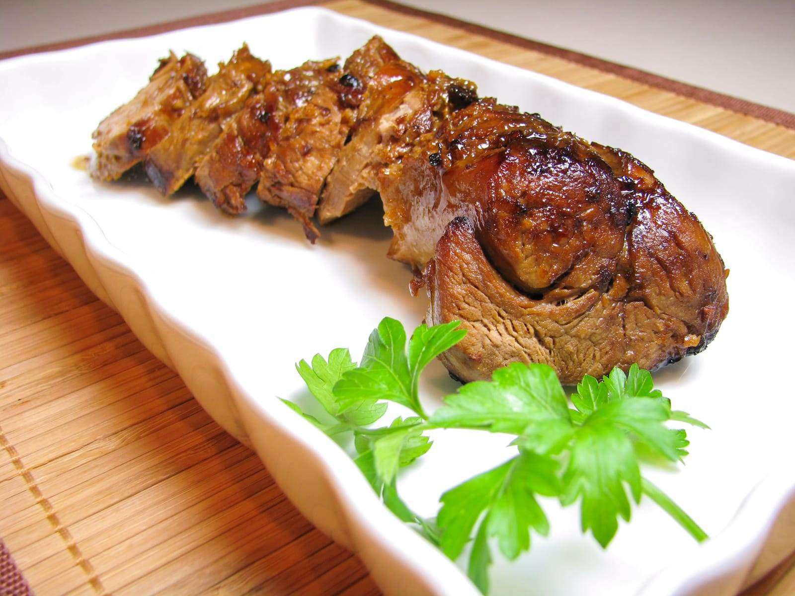 - Cut pork into 1/4 inch thick slices and drizzle with sauce. Enjoy.
