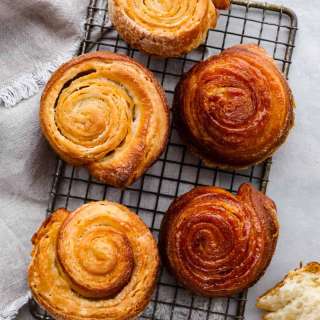 - On a lightly floured countertop, roll the dough into a rectangle about 12″ x 18″ with the shorter sides to your left and right. The dough may be sticky and difficult to handle. Use a metal pastry scraper to coax the dough into shape, and a minimal sprinkling of flour, as necessary. (It will all be beautiful later, trust me.)