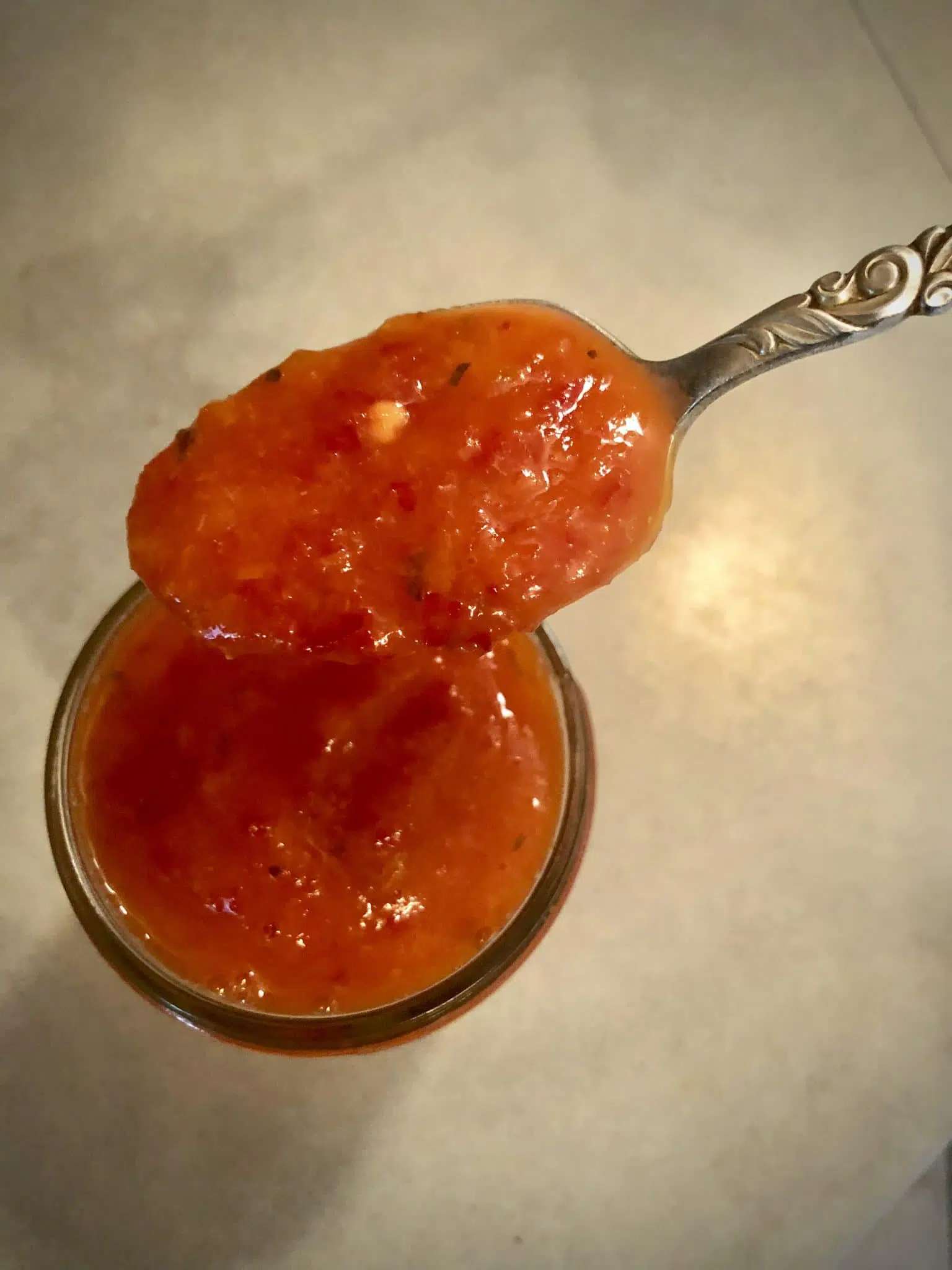 - Place peaches and peppers in jar and refrigerate. When you’re ready to use the sauce, take out the portion you need and process in blender until smooth.
