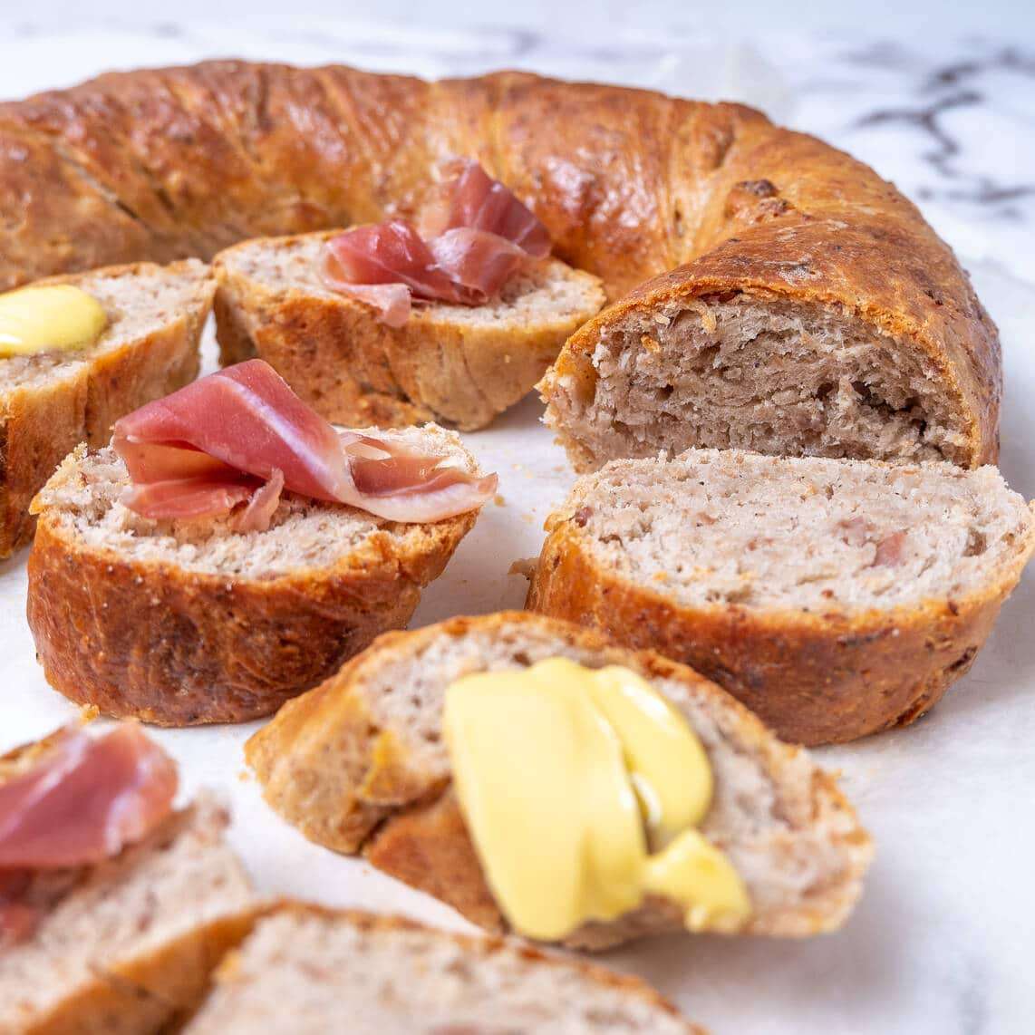 - Add prosciutto and mix using a wooden spoon or spatula instead of the mixer unless you want very small pieces of prosciutto.