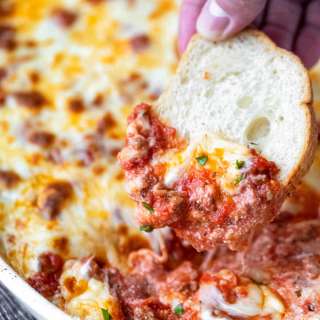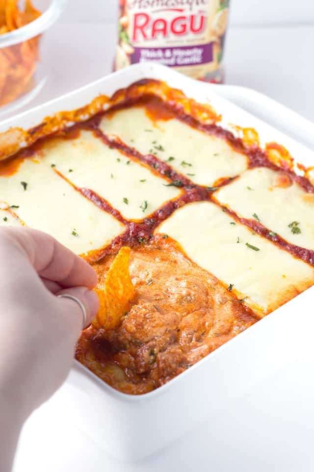 Lasagna dip is a cheesy, hot dip that’s packed with Italian sausage and three types of cheese! All of the flavor of lasagna in an easy dip that’s perfect for game day