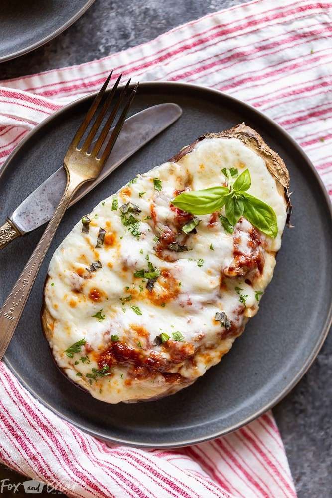 This Lasagna Stuffed Eggplant is a low carb, gluten free, healthy dinner you can be excited about. Learn how to make this healthy baked eggplant recipe.