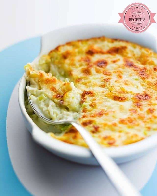 - In a salad bowl, mix the leek with the béchamel sauce. Place this mixture in a gratin dish.