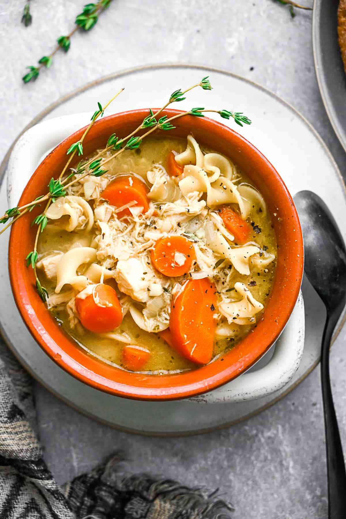 This leftover turkey noodle soup takes your tender leftover turkey from Thanksgiving and transforms it into a luscious soup with noodles and veggies.