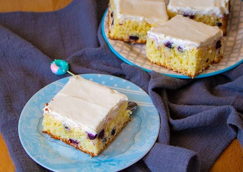 This lemon blueberry coffee cake can be eaten with or without the lemon icing. With the icing it is a great dessert, without the icing you can call it breakfast!