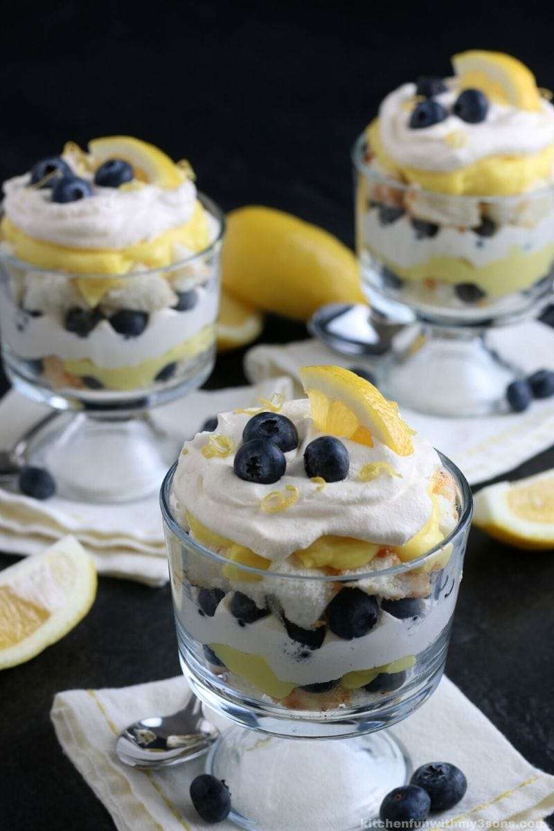 One bite of this Lemon Blueberry Trifle recipe and you are in heaven. The combination of tangy lemon pudding and fresh blueberries together with the angel food cake is the perfect dessert for friends and family. The look of this cake is absolutely stunning and it is sure to impress.