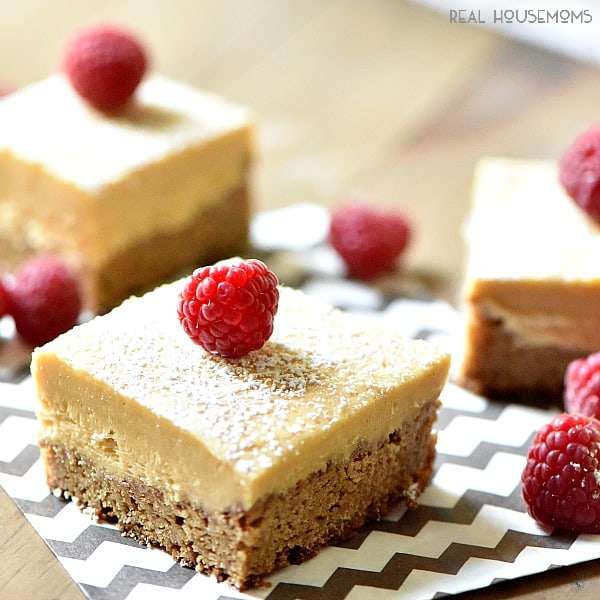 - slice into squares and top each square with a raspberry if using.