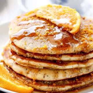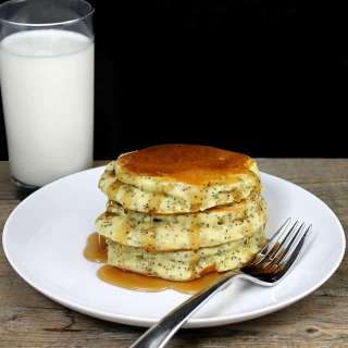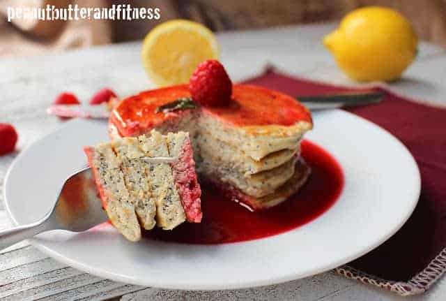 Lemon Poppyseed Protein Pancakes with Raspberry Syrup