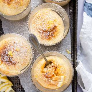 These Lemon Pudding Cakes are made with only one batter and on 7 ingredients, yet gives you two layers of delicious lemony delight. The top is a light and airy cake layer, and the bottom, a silky pudding bursting with fresh lemon flavor.