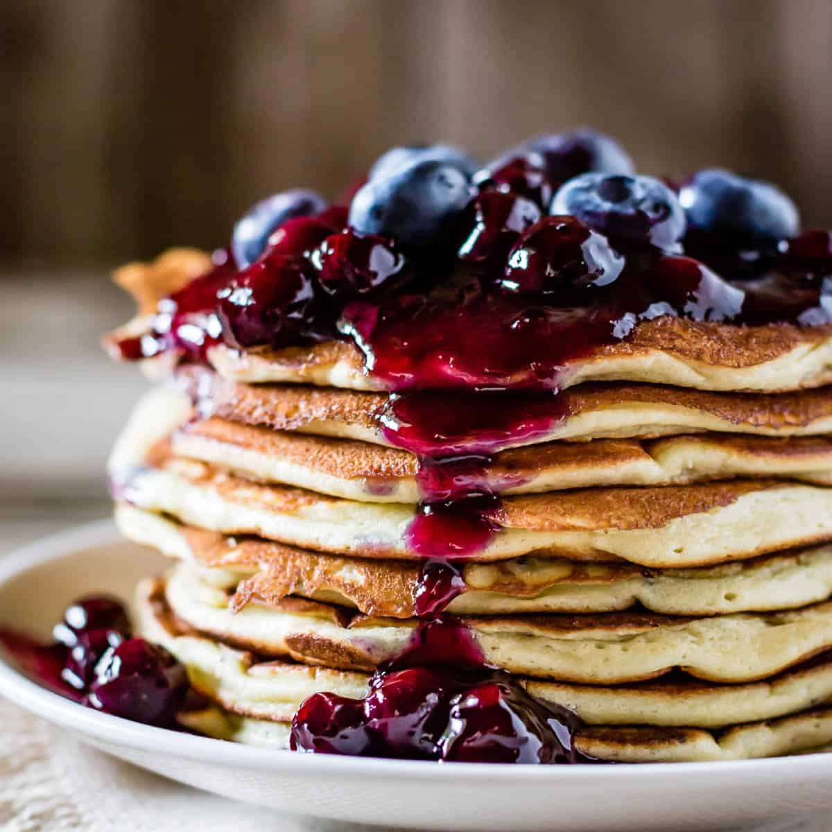This Lemon Ricotta Pancakes recipe might be the most fluffy and light pancake recipe you can imagine. Made with pantry staples, it is bursting with zesty flavors. Top them off with homemade blueberry sauce or simply drizzle them with maple syrup for a delicious breakfast.