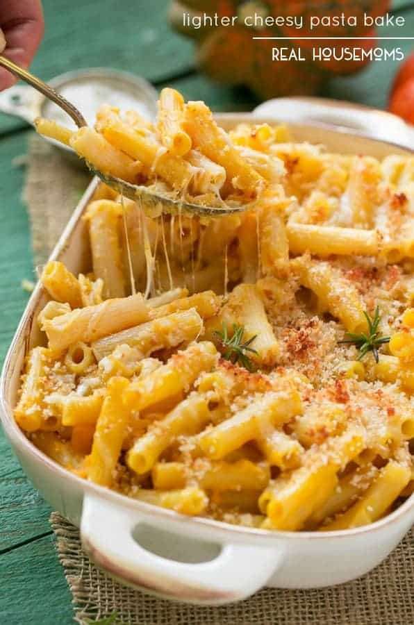 This lighter cheesy pasta bake is pure comfort food without all of the guilt.