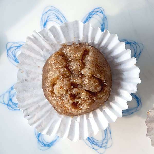 - Grind the Almonds in a mixer small as shown, then add the sugar and grind shortly again.