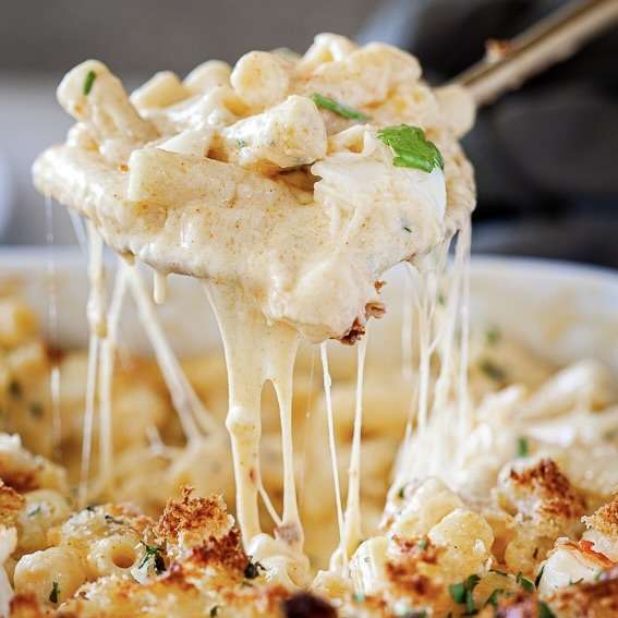 - Combine the cooked macaroni with the cheese sauce and stir in the lobster meat.