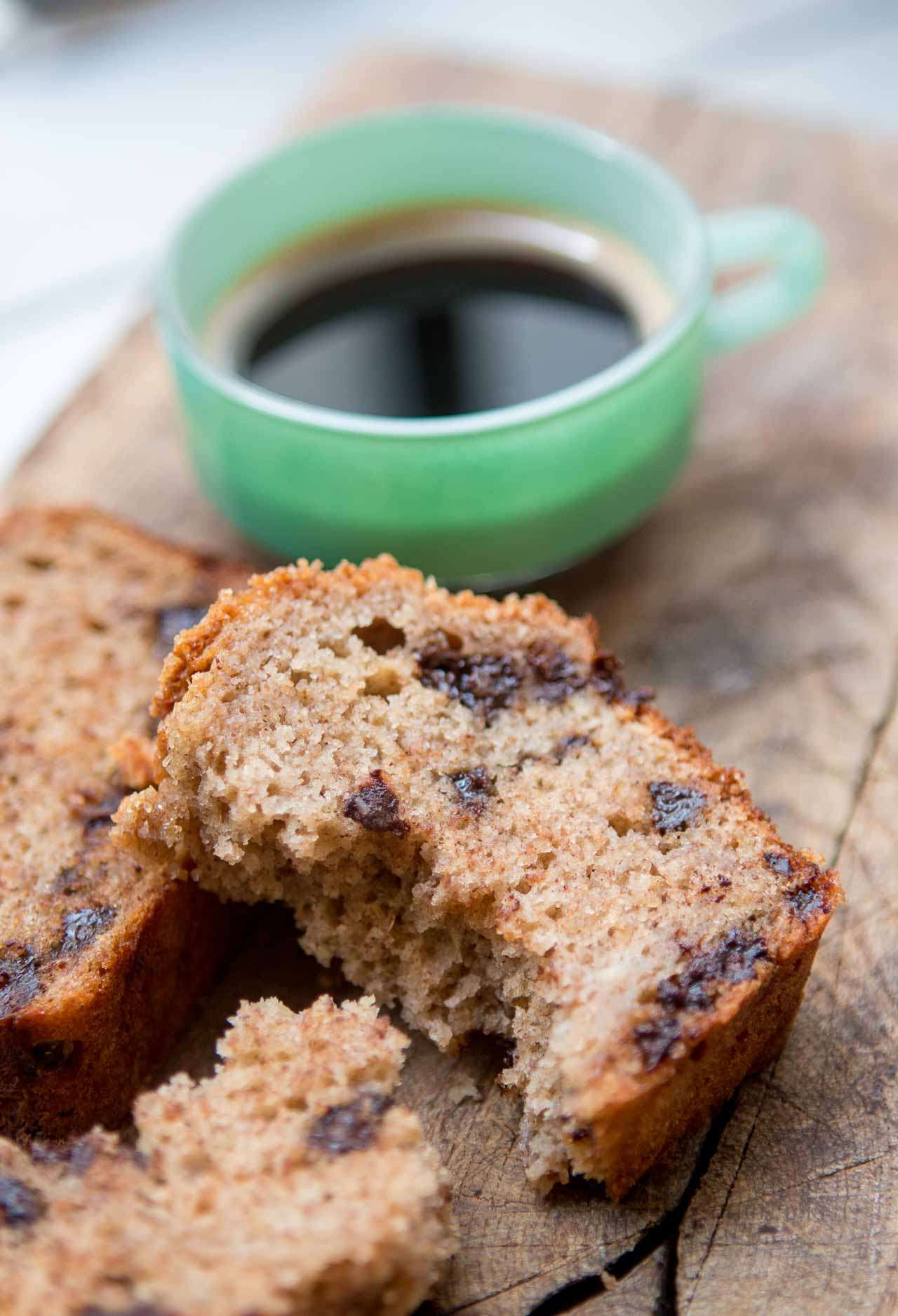 - In a medium bowl, whisk together the flour, baking powder, baking soda, salt, cinnamon, and sugars. Make a well in the center of the dry ingredients and add the egg, egg white, banana puree, sour cream or yogurt, and vanilla. Stir not too vigorously with a spatula until the ingredients are almost completely incorporated (don't overmix), then fold in the chocolate chips.