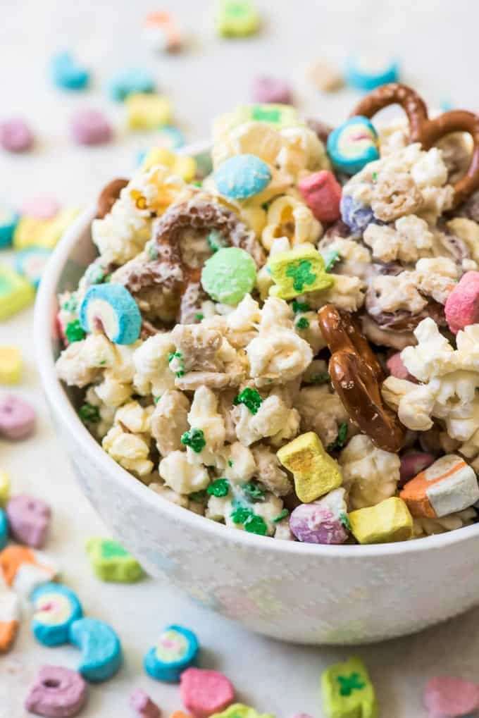 This magically delicious Lucky Charms Snack Mix has a rainbow of Spring colors and is a fun, sweet treat for snacking! Made with pretzels, M&M's, white chocolate, popcorn, sprinkles, and of course, Lucky charms, this is a hard-to-resist goodie that is fun for both St. Patrick's Day and Easter.