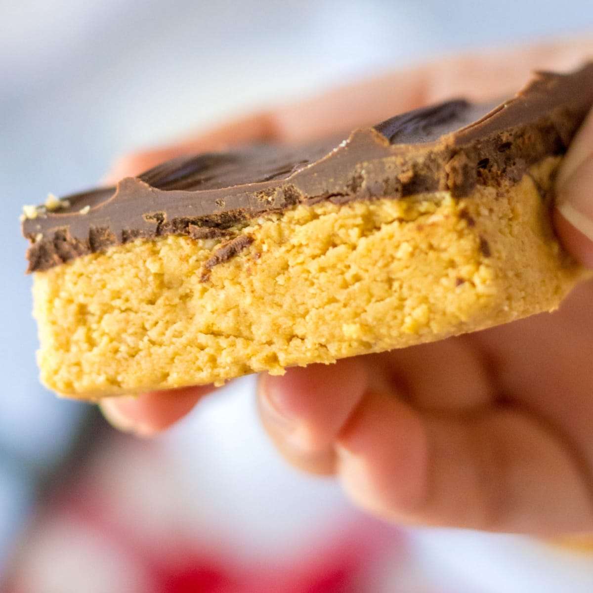 Everyone loves those Peanut Butter Bars they used to serve at the school cafeteria. This no bake version is just as amazing! Peanut butter and graham crackers come together to create the luscious base layer that is then topped with a layer of chocolate. These are a quick, delicious sweet treat everyone loves.