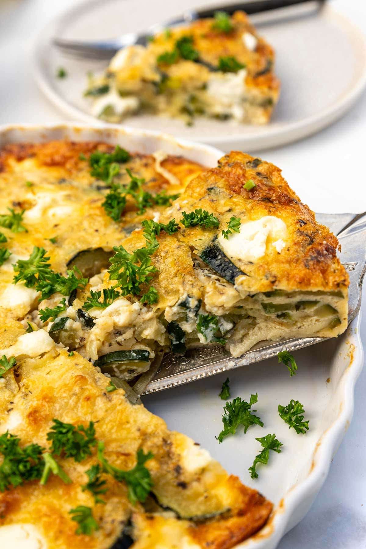 - Alternative fillings: Try frying some bacon pieces before caramelizing the onions for lots of extra flavor in the zucchini crustless quiche. Other filling options could be leftover cooked roasted vegetables, chopped asparagus (no need to pre-cook), or sautéed frozen vegetables such as green beans or broccoli.