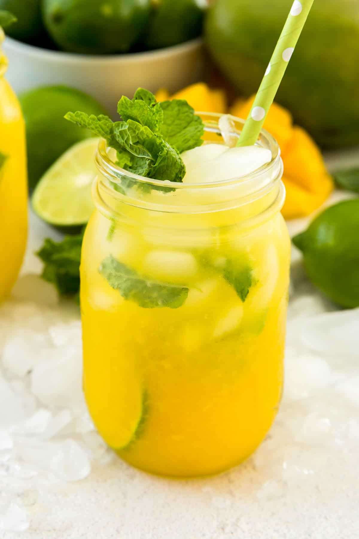 A refreshing mojito with only five ingredients including mango, lime and mint.