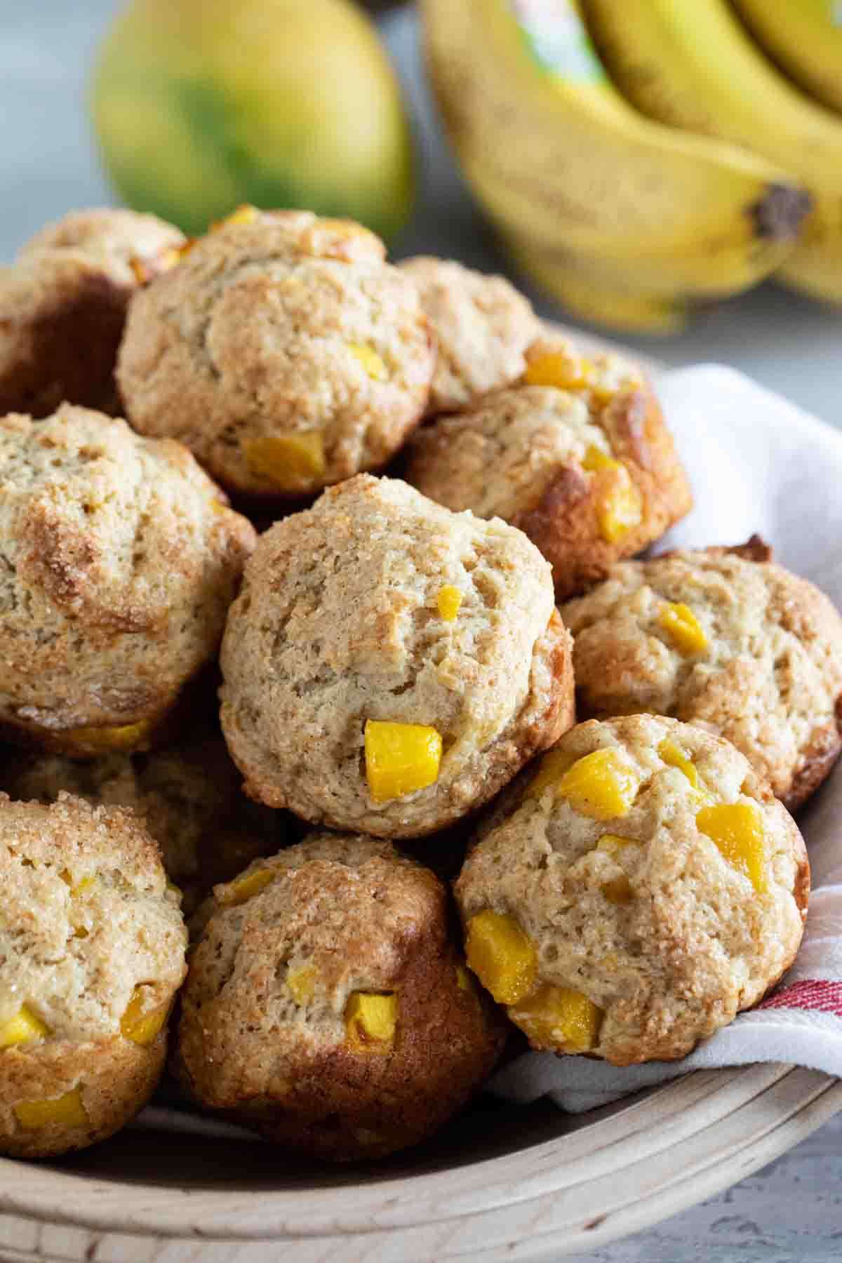 Moist muffins with sweet pockets of mango, these Mango Muffins with Banana are the perfect breakfast treat.