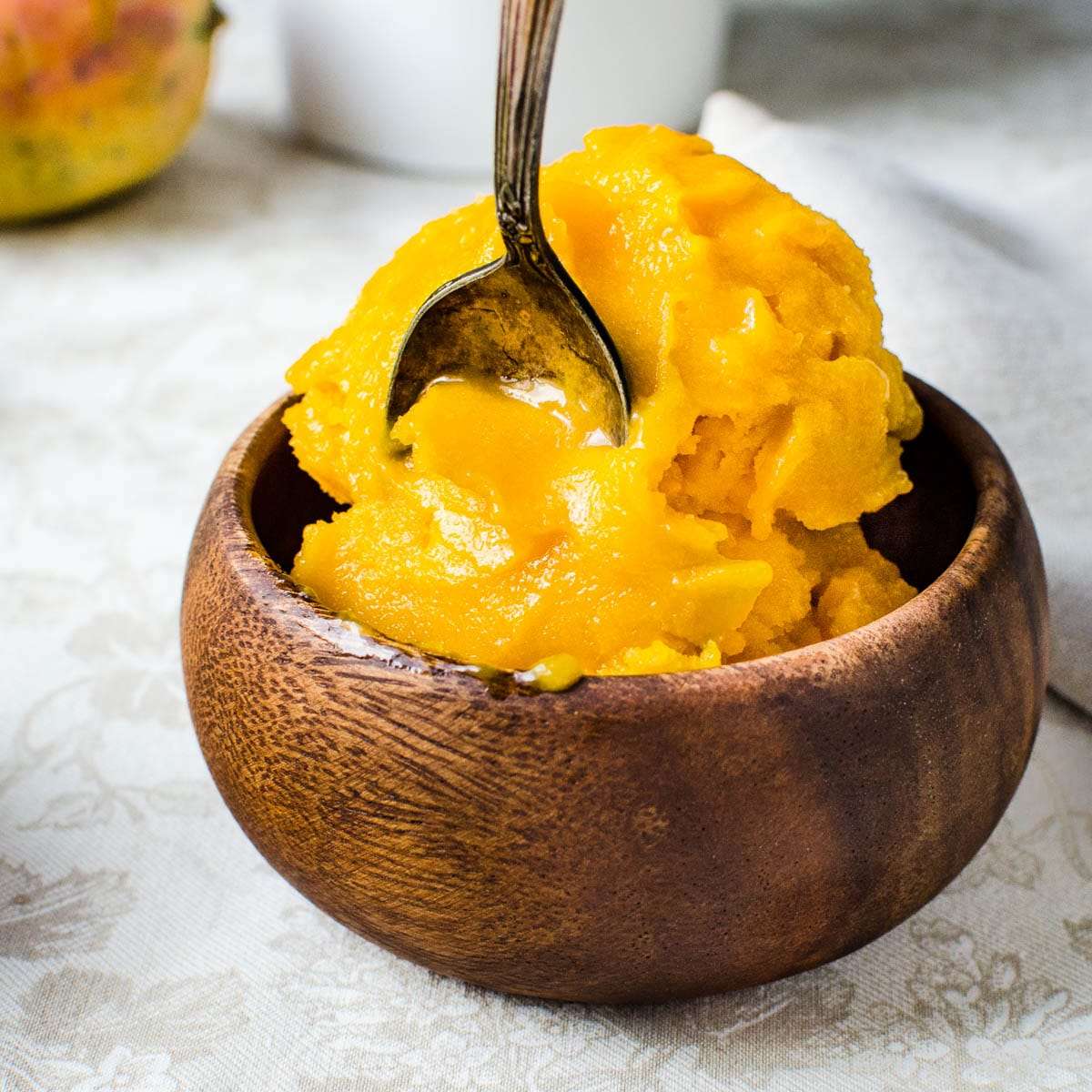 This easy, vegan, gluten free, dairy free dessert made with whole tropical fruit is ready to savor after 20 minutes in the ice cream maker.