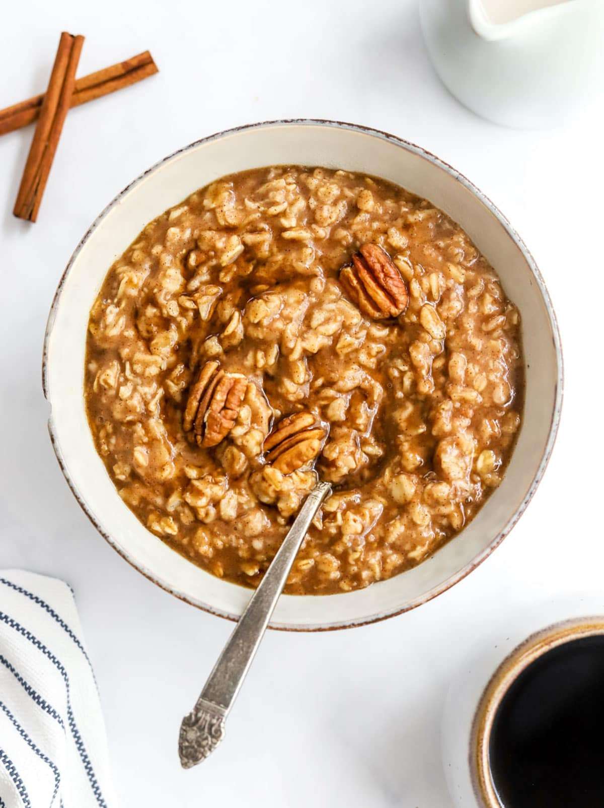 Skip the store-bought packets and make this maple brown sugar oatmeal at home! It comes together in 10 minutes and the combo of maple syrup and brown sugar gives this oatmeal a sweet, caramelized flavor.