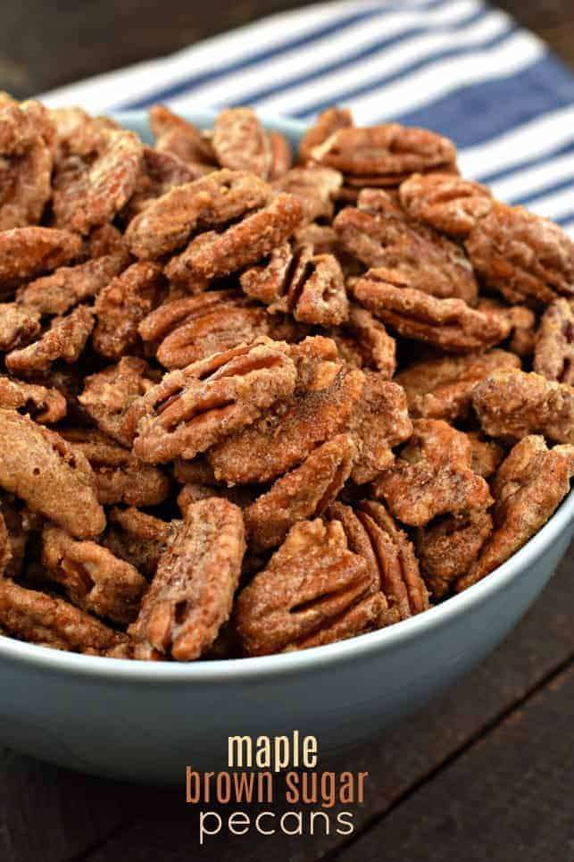 Sweet and salty, this Maple Brown Sugar Pecans recipe is a great treat to have on hand during the holidays! Make a batch today, for snacking or sprinkling on salads!