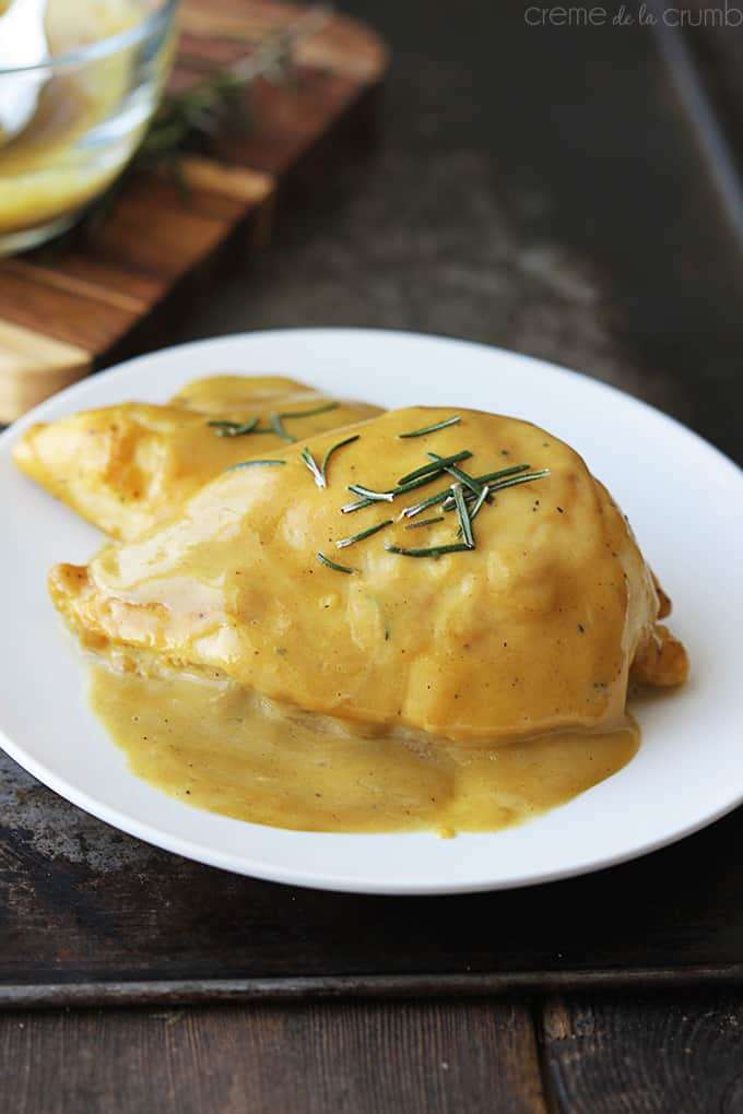 Baked chicken with a rich and creamy maple dijon sauce! Easy, delicious, and done in less than 30 minutes!