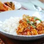 - Gently stir in the starch slurry to thicken the sauce, and then the sesame oil. Cook for another minute or so to bring everything together. Garnish with the remaining scallion, and serve hot with steamed rice.