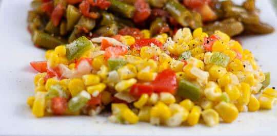 Maque Choux is a creamy, spicy Cajun side dish made of corn, onions, red and green bell peppers, garlic, heavy cream, and Cajun spices. It is perfect for Mardi Gras or any time of year.