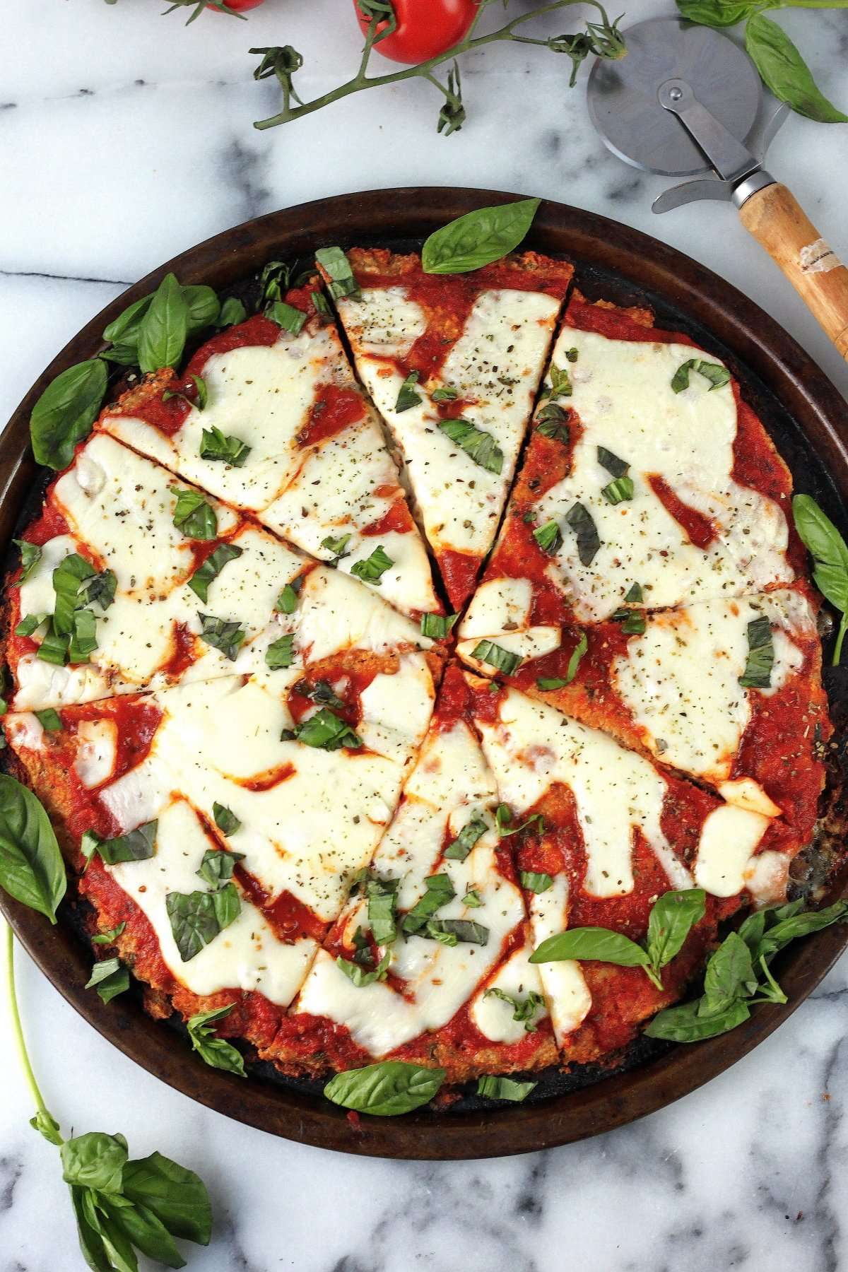 - Sprinkle 1/2 of the mozzarella cheese over baked meat, followed by the tomato sauce and tomatoes. Sprinkle remaining mozzarella cheese over pizza.