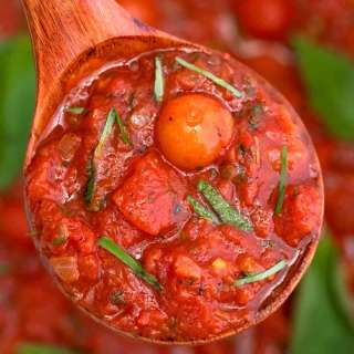 Aromatic and totally delicious, this homemade marinara sauce flavored with garlic and basil is a classic sauce recipe that can be used in so many ways!