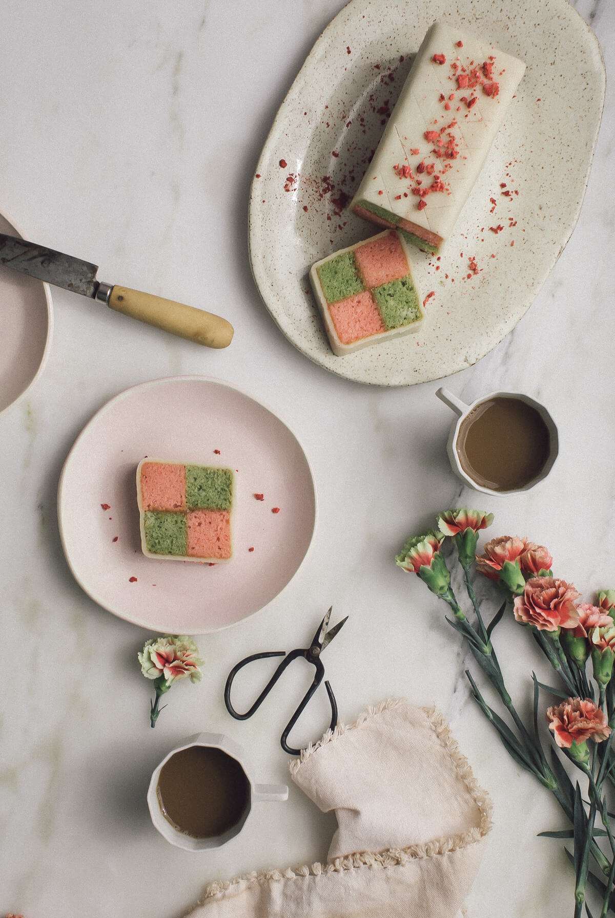 This Matcha Strawberry Battenberg Cake is a cute checkered cake wrapped in marzipan. Make it for a spring brunch!