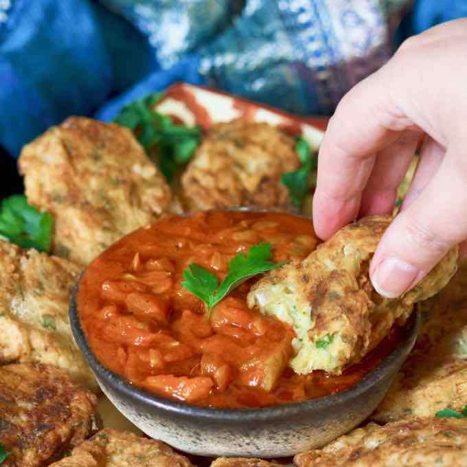 Mbatten brouklou are delicious cauliflower and potato fried croquettes, originally from Tunisia, that can also be prepared with cheese as well as ground meat.