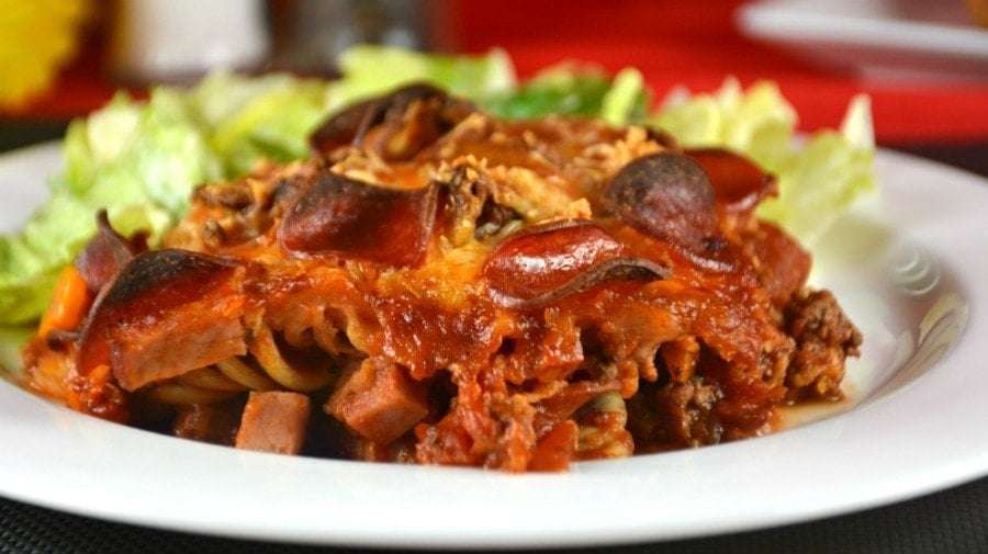 Pizza Pasta Casserole is meat lover's dream come true! Loaded with pepperoni, sausage, ham, and bacon, this casserole is hearty and filling. Follow this pizza pasta casserole recipe and see just how easy it is to make. The whole family will love it!