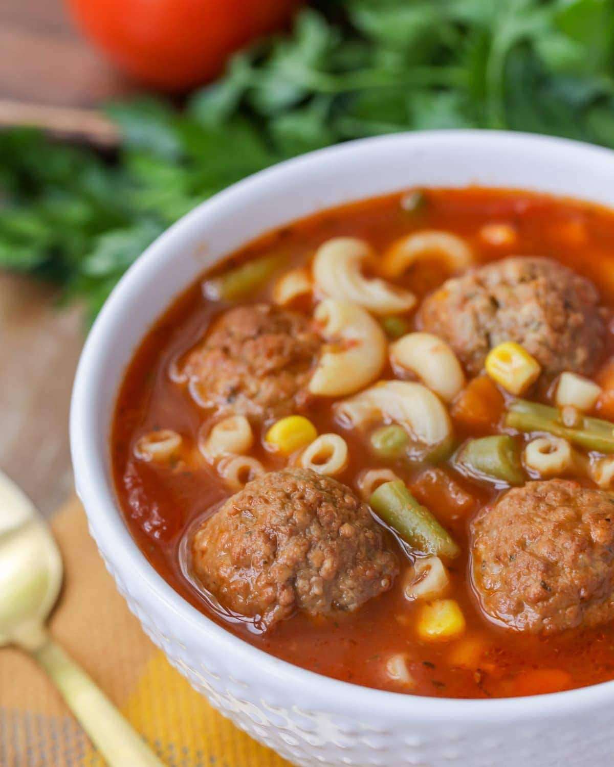 Veggie loaded Meatball soup is filling and delicious. Your entire family will love and devour this kid-friendly dish!