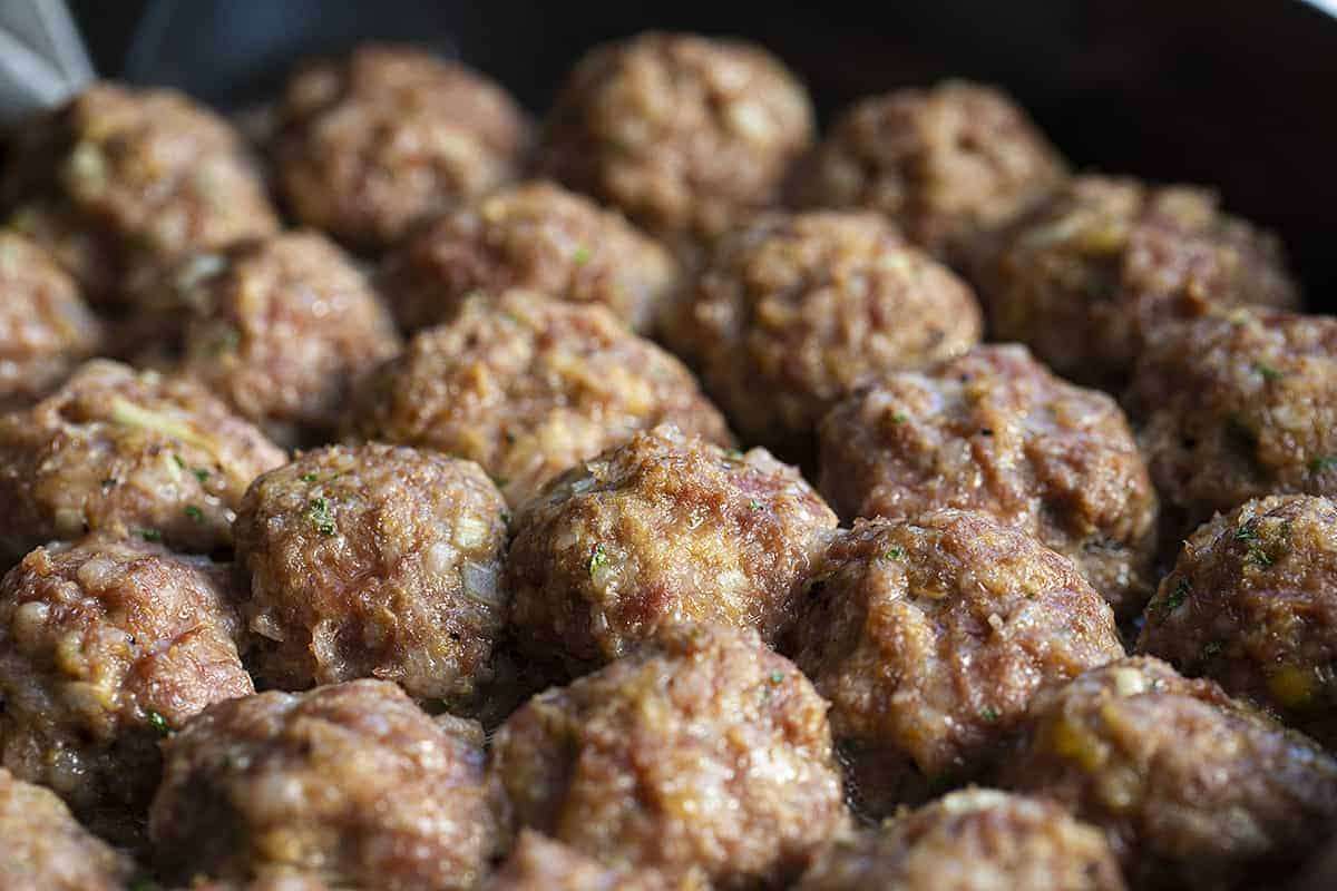 - Form into desired size meatballs, greasing hands before starting to keep the meat from sticking, and place on a parchment-lined baking sheet.