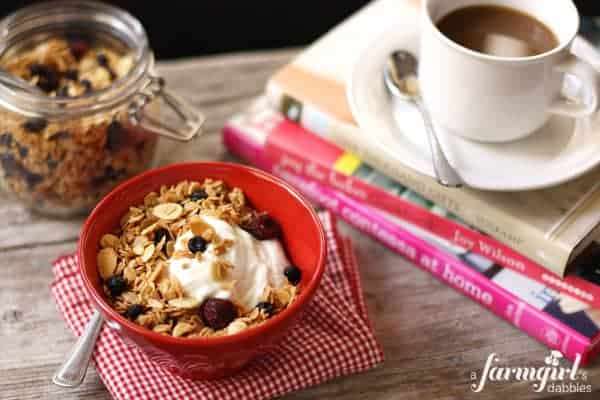 Homemade granola is so much better than pre-packaged. Bake up a batch of Merry Almond Cherry Berry Granola for your own breakfast bowls and to package as gifts!
