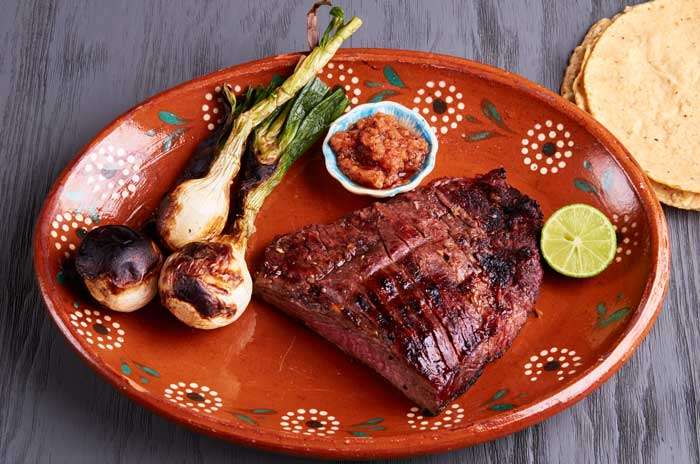 Authentic Mexican Carne Asada - Grilled steak, arrachera, or skirt, which has been marinated with lime and garlic and then quickly cooked over high heat served with a stack of hot tortillas and a bold salsa.
