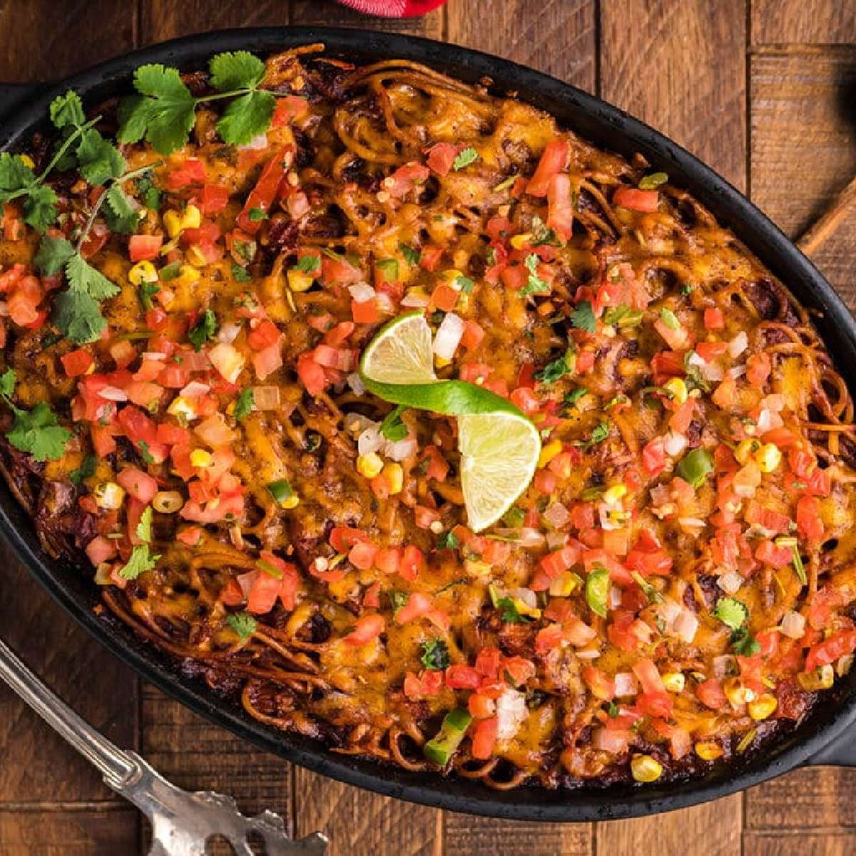Mexican chicken spaghetti is loaded with tender, white meat chicken, spaghetti, cheese, and of course, a ton of Mexican flavor.