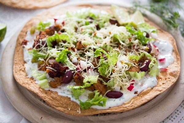 Amazing Mexican chorizo tostadas with kidney beans and cheese. With instructions on how to bake tostada shells.