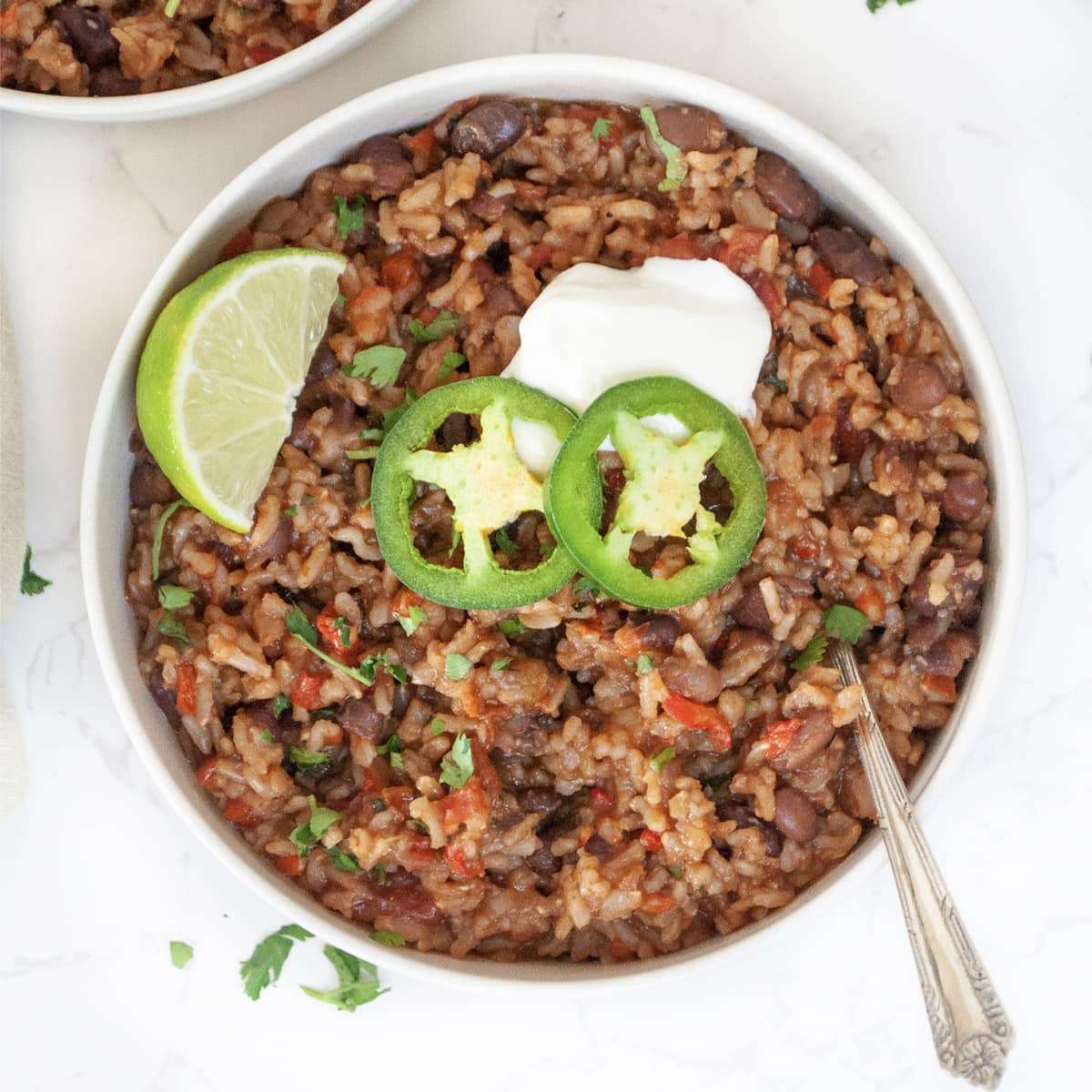 These Mexican Instant Pot Rice and Beans are flavorful, easy to make, and wonderfully delicious. This dump-and-go recipe is made with brown rice, beans, broth, fire-roasted tomatoes, and spices. A delightful vegan and gluten-free dish for dinner!