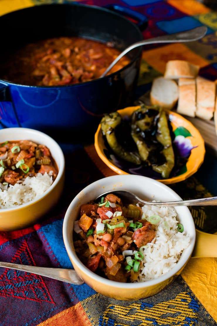 - Serve Mexican jambalaya over cooked basmati rice, topped with slices of green onion, and sprinkle with Creole seasoning, if using.