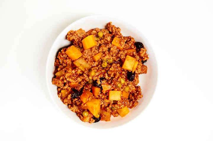 Mexican style ground beef with carrots, potatoes, green peas, raisins, and tomato sauce. Great as a taco filling, over white rice, or on a tostada. One of our favorite ground beef recipes.
