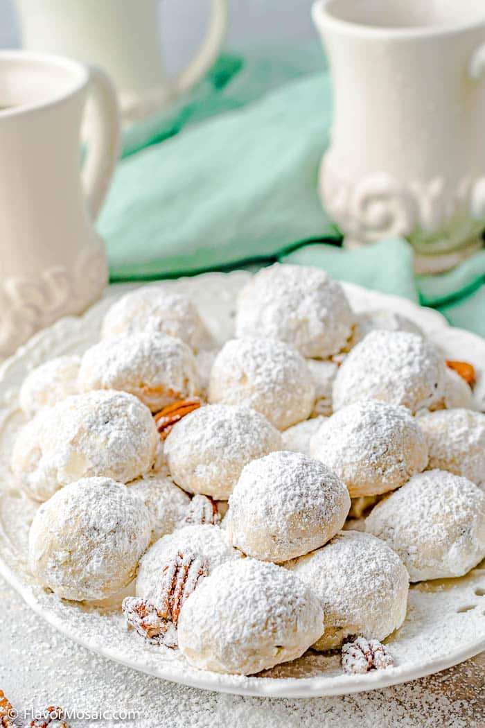 Mexican Wedding Cookies, AKA Russian Tea Cookies, are butter pecan shortbread cookies coated in powdered sugar that melts in your mouth with sweet buttery goodness.