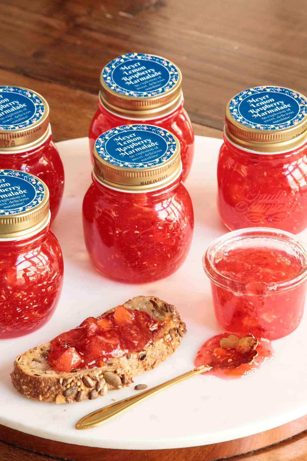 This Raspberry Meyer Lemon Marmalade tastes like a delicious explosion of sunshine and takes less than 45 minutes to make!