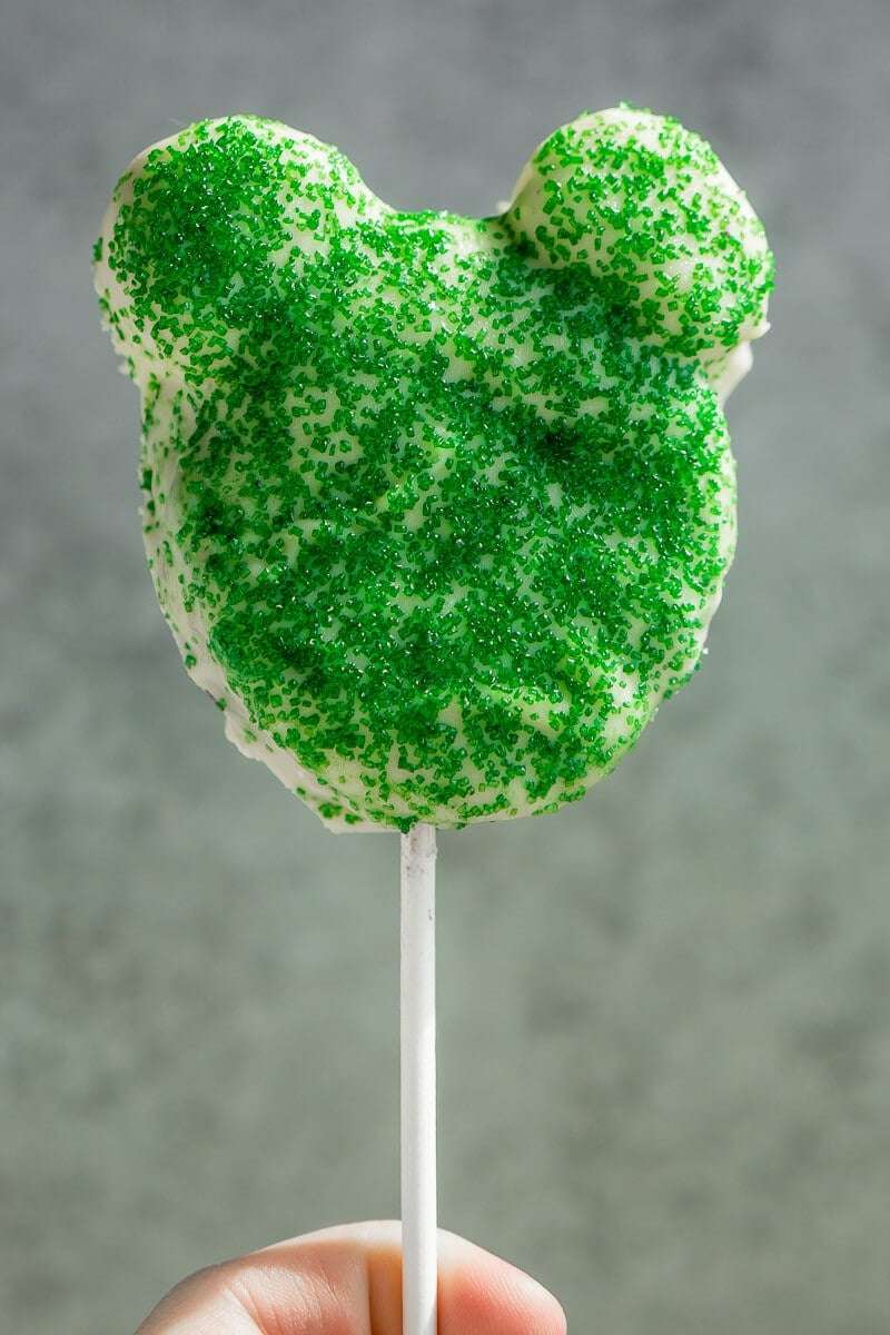 - Pour white chocolate over Mickey Mouse heads until completely covered. Top with sprinkles and place in refrigerator or freezer until chocolate hardens.