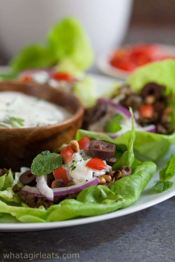 - Serve in lettuce wraps with fresh mint leaves, chopped tomatoes, sliced onions and olives.
