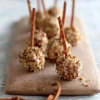 - Prepare a baking sheet with wax paper or parchment. Roll cheese mixture into 1-inch balls and roll in toasted pecans and place on baking sheet. Refrigerate for 1 hour or up to overnight. Serve chilled or at room temperature with crackers or apples.