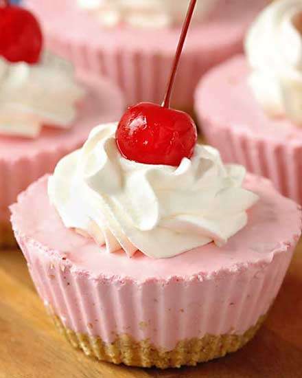 - In a mixing bowl, combine cream cheese, powdered sugar, heavy cream, cherry juice and vanilla extract and mix well. Spoon mixture into prepared cupcake liners.