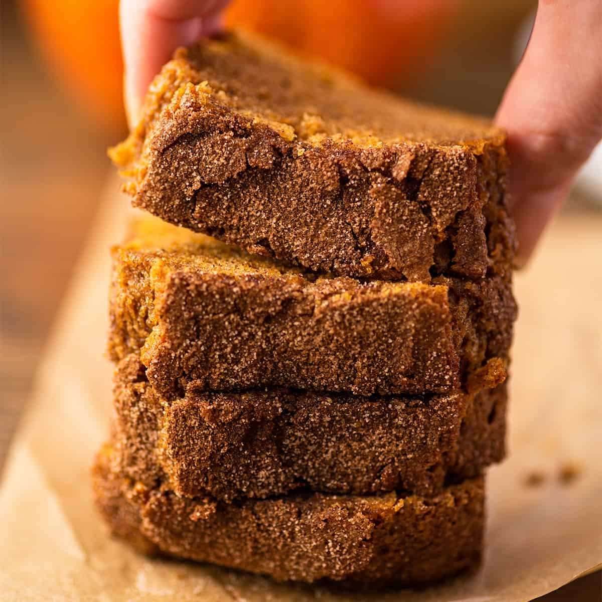 This mini pumpkin bread recipe makes a single small loaf of soft and moist pumpkin bread with a ridiculously good cinnamon sugar crust.